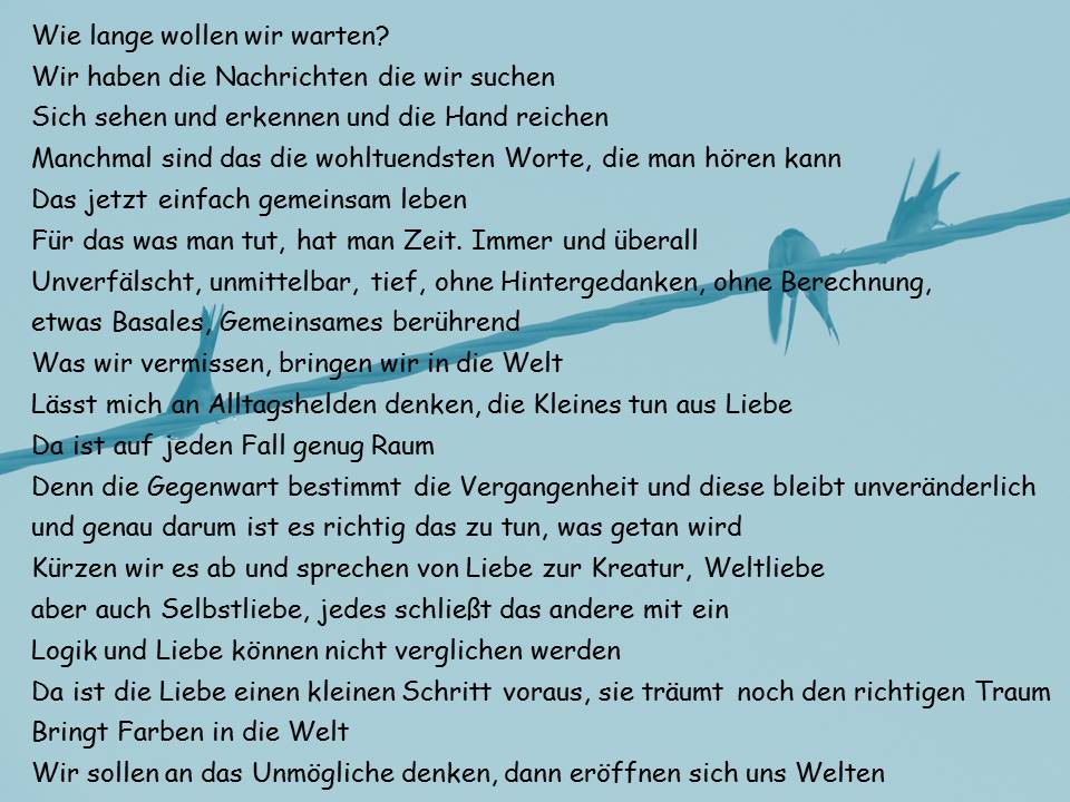 Und ich finde, es passt in diesen Tagen ganz besonders…