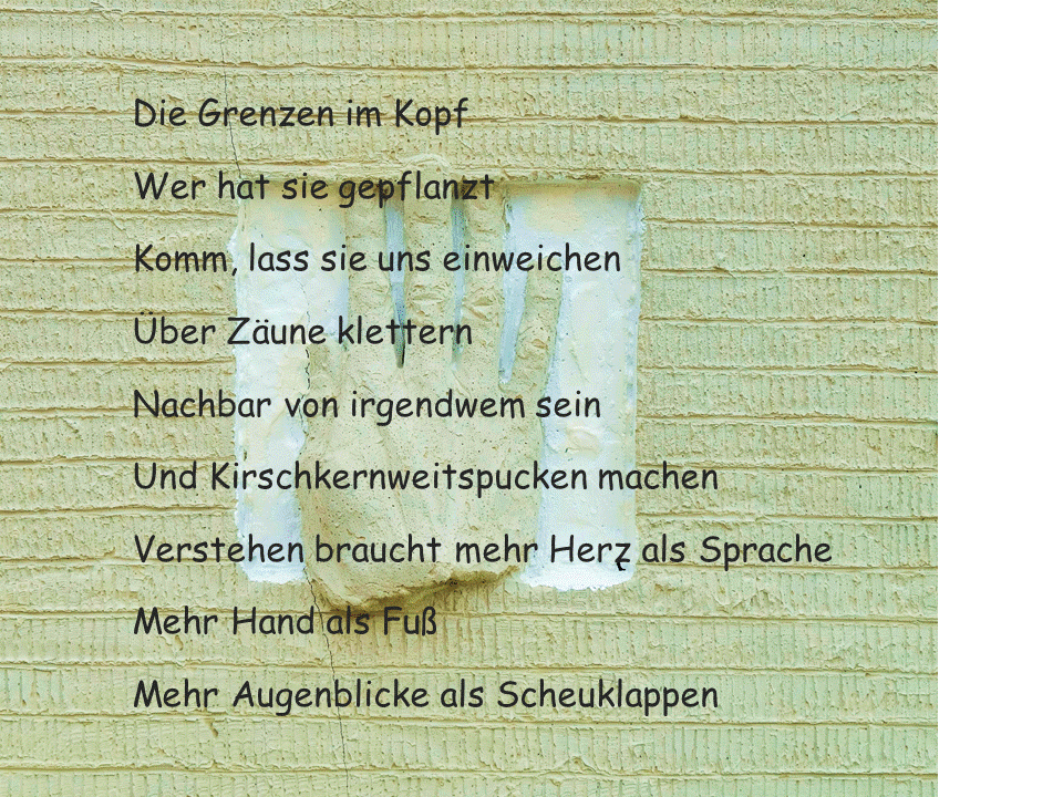 So ohne alles Hintergrundwissen kam ich nicht wirklich klar mit den Worten, aber als Gedicht sind sie voller Verstehen für das, was passiert und nicht aufzuhalten ist und abweisen dürfen wir Hilfsbedürftige auf keinen Fall!
