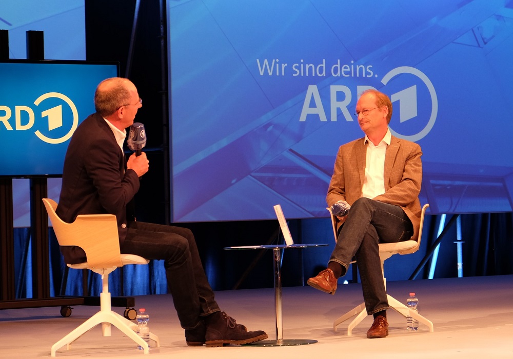 Das erste Gespräch, das ich hier verfolgte, war zwischen dem Moderator Thomas Ranft und Sven Plöger, den die meisten über den Wetterbericht kennen. Das aktuelle Buch von Sven Plöger trägt den Titel: „Zieht euch warm an, es wird heiß! – Den Klimawandel verstehen und aus der Krise für die Welt von Morgen lernen.“ Ein gutes Interview, bei dem zu spüren war, dass das Klimathema eine Herzensangelegenheit des sympathischen Sven Plöger ist. Er brachte im Gespräch sehr verständliche Beispiele, warum das Klimathema so bedeutsam ist. Er spricht nicht von Verzicht, um das Klima zu schützen, sondern von Veränderung, die sogar einen Gewinn bedeuten könne. Wenn Sven Plöger die aktuellen Krisen mit einer Welle vergleicht, dann spricht er davon, dass Corona eine 5 Meter hohe Welle und die Klimakrise eine 500 Meter hohe Welle sei. Er sagte, dass wir eine Transformation sowie politische Rahmenbedingungen benötigen, um die erforderlichen Ziele zu erreichen. Wenn wir auf die Wissenschaft hören, retten wir uns und damit auch den Wohlstand, so Sven Plöger. Er betonte, dass wir Chancen haben, das Problem zu lösen. In seinem sicherlich sehr lesenswerten Buch gibt er zudem konkrete Handlungsempfehlungen.