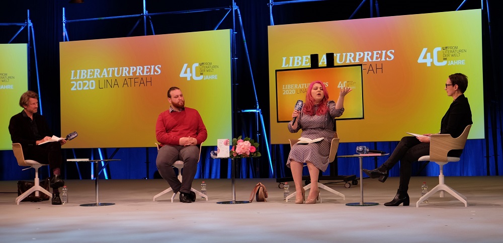 Später fand das Gespräch zur Preisverleihung LITPROM LiBeraturpreis statt. Lina Atfah, die ursprünglich aus Syrien kommt, erhielt den Preis für ihren Gedichtband „Das Buch von der fehlenden Ankunft.“ Wie schön, dass dieser Preis für ein Gedichtband vergeben wird.