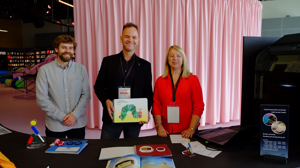 In dieser Halle ist auch der Gutenberg Stand zu finden, bei dem Besucher*innen kreativ sein können und der alljährlich zur Buchmesse dazugehört: