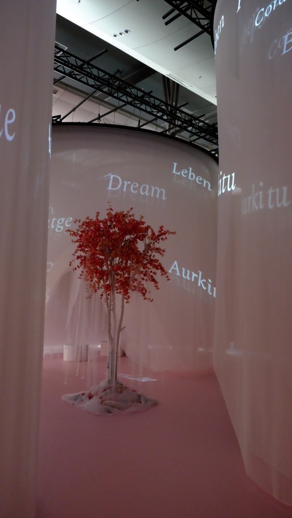 Im Spanischen Pavillon erlebte ich die „Umarmung“ (ihr erinnert euch? So heißt die Sitzgelegenheit), anders als bei der Eröffnung Dienstag nun gut „besessen“: