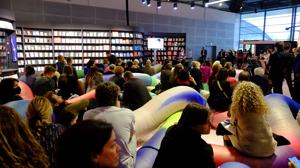 Meine erste Veranstaltung führte mich zur „Pressekonferenz Ehrengast 2023 Slowenien“. Slowenien, das im nächsten Jahr das Gastland der Buchmesse sein wird, hat das Motto „Waben der Worte“ gewählt. Worte der Literaten und Dichtenden, die in die Welt hinausfliegen werden. Wir hörten Reden von Juergen Boos, dem Direktor der Frankfurter Buchmesse, von der slowenischen Kulturministerin Asta Vrečko und dem slowenischen Kurator Miha Kovač. In der anschließenden Gesprächsrunde wurden die Autorinnen und Autoren Peter Svetina, Nataša Kramberger, Erwin Koester und Ana Marwan von Katja Gasser interviewt. Slowenien ist ein kleines Land, das gemessen an der Einwohnerzahl eine große kulturelle Vielfalt aufweist und ich freue mich auf dieses Gastland im nächsten Jahr.