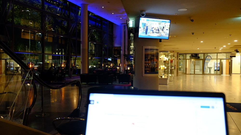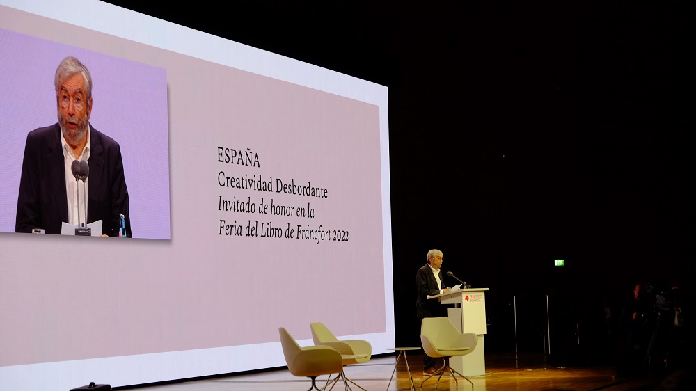 Hiernach ging ich zum Congress Center auf der Frankfurter Buchmesse. Es war angekündigt, dass der ukrainische Präsident Wolodymyr Selenskyi per Videobotschaft zur Buchbranche sprechen werde. Er wurde auf gemeinsame Einladung der Frankfurter Buchmesse und des Europäischen Verlegerverbandes hierzu eingeladen. Im Rahmen der Veranstaltung sprachen Peter Kraus vom Cleff (Präsident der FEP und Hauptgeschäftsführer des Börsenvereins des Deutschen Buchhandels), Juergen Boos (Direktor der Frankfurter Buchmesse), Oleksandr Afonin (Präsident Ukrainian Publishers and Booksellers Association) und Jesús Badenes del Río (CEO, Grupo Planeta).
