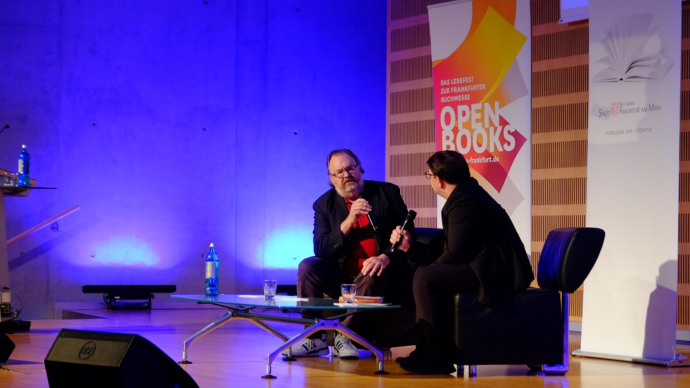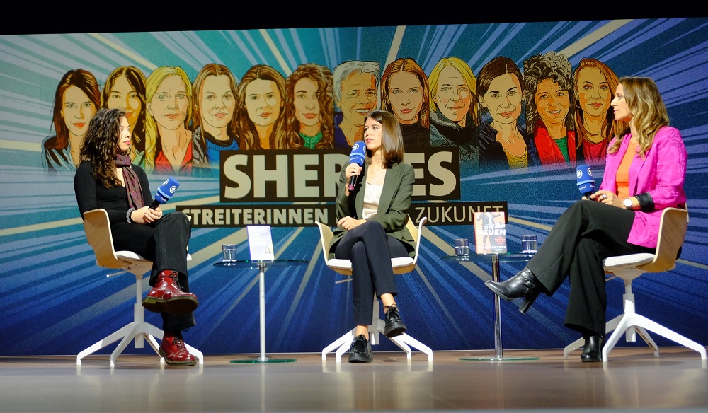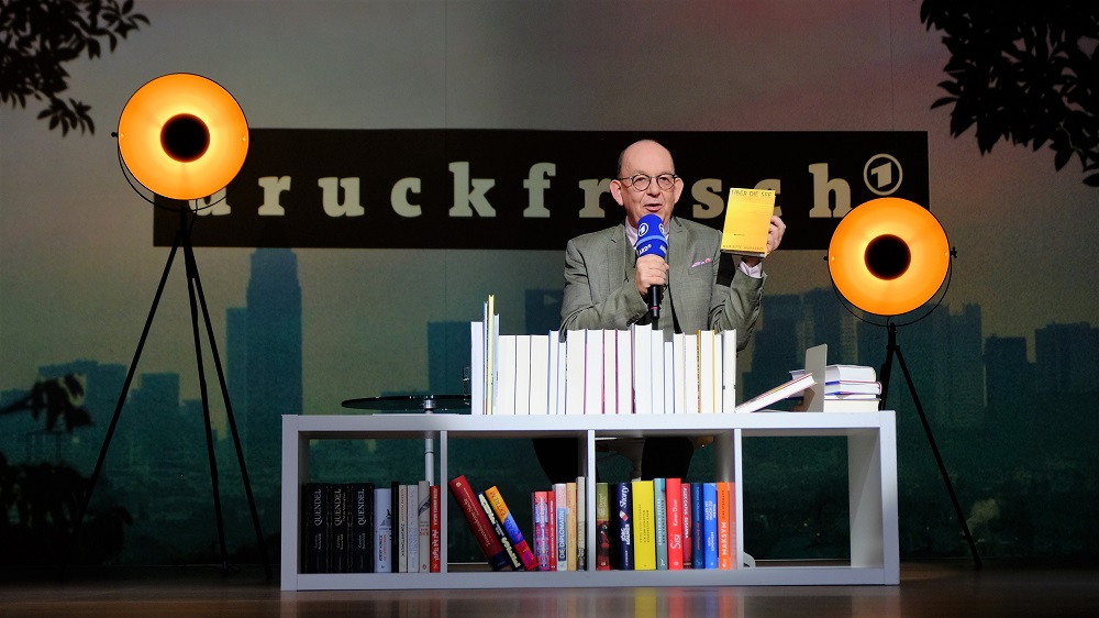 Auf der ARD-Bühne erlebte ich Denis Scheck, der gewohnt temporeich und humorvoll einige Bücher vorstellte. So empfahl er etwa „Über die See“ von Mariette Navarro, für alle Krimifans „Alibi für einen König“ von Josephine Tey“, weiterhin die Romanbiografie „Mildred: Die Geschichte der Mildred Harnack und ihres leidenschaftlichen Widerstands gegen Hitler“, das Sachbuch des Jahres „Die Hohenzollern und die Nazis: Geschichte einer Kollaboration“ von Stephan Malinowski und das Buch „Die Heldin reist“ von Doris Dörrie, das nun auch auf meiner Wunschliste steht.