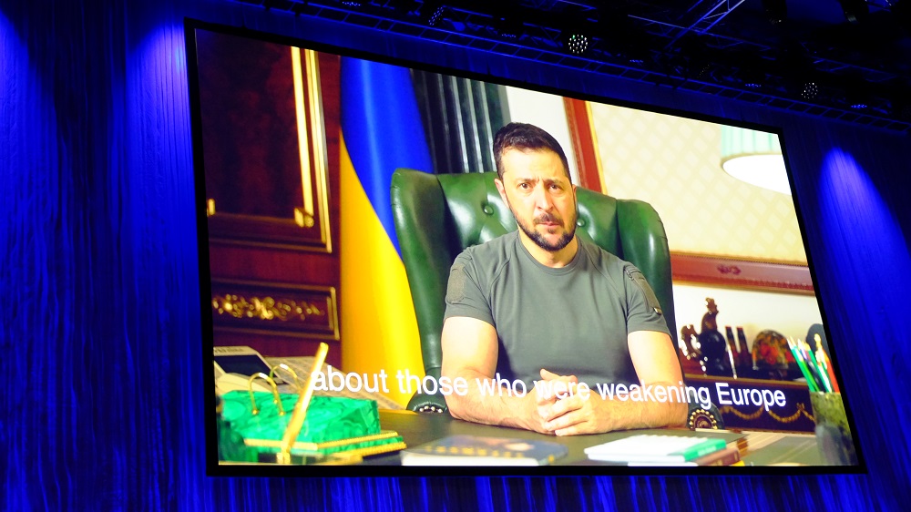 Peter Krauss von Cleff erzählte in seiner Begrüßungsrede, dass das Gespräch mit Selenskyi gestern Abend aufgezeichnet wurde. Er und vermutlich alle im Saal waren sichtlich berührt, auch in Anbetracht der aktuellen Energieversorgungsprobleme in der Ukraine.