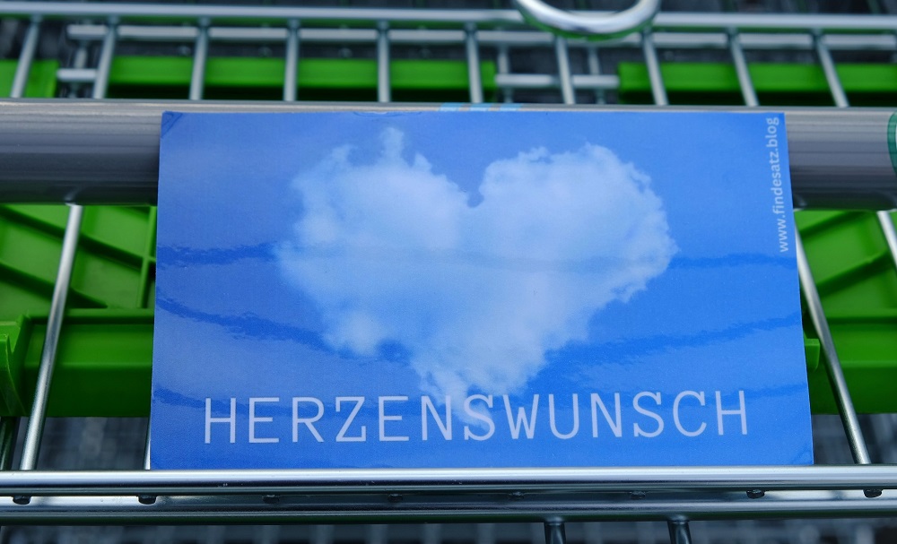 Ich dachte es tatsächlich als Gegensatz. Einen Moment vor dem Einkaufen Innehalten und überlegen, was brauchen wir wirklich, was sind Herzenswünsche. Und die passen vermutlich in keinen Einkaufswagen.