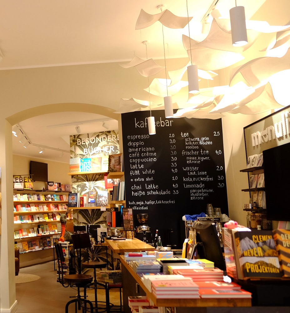 Ich entdeckte nur gute Bücher, wahre Buchschätze, und liebevolle Kleinigkeiten zwischen den Büchern oder auf den Regalen. Dazu eine einladende Kaffeebar. Ein sehr inspirierender Ort, der die Schönheit der Bücher zeigt, das alles in einem wundervollen Rahmen.