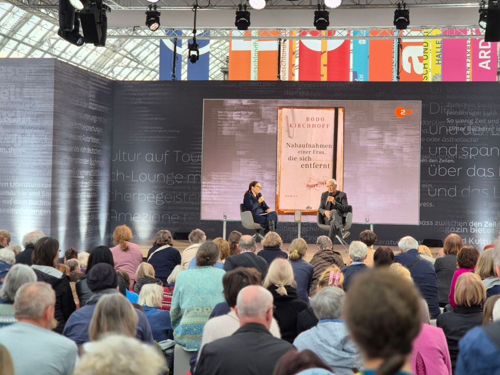Gut besucht war auch Thea Dorn im Gespräch mit Bodo Kirchhoff zu seinem Buch „Nahaufnahmen einer Frau, die sich entfernt“:
