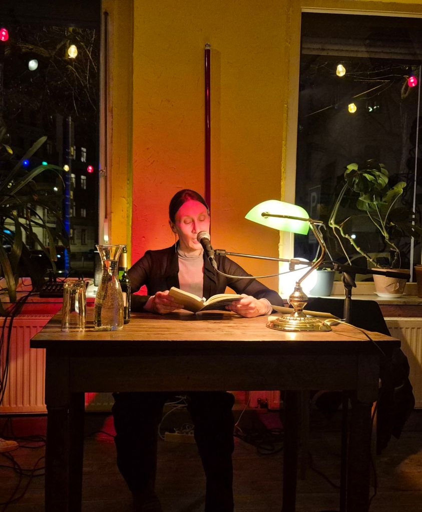 Abends ging es für mich weg von der großen Messe zum Lyrik- und Prosa-Abend zur Buchmesse im feinen kleinen Kreis mit Sascha Kokot, John Sauter und Martina Hefter: