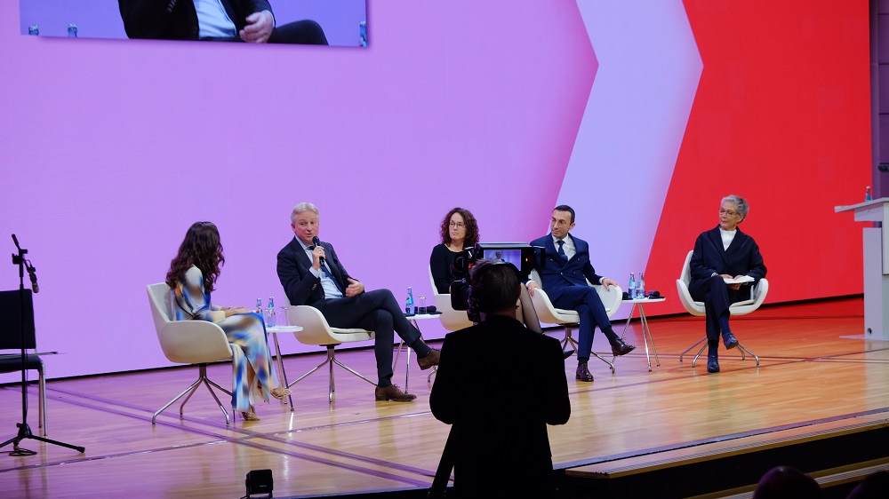 Am Abend fand einer der Höhepunkte der Buchmessetage statt: die Literaturgala. Thea Dorn („Das Literarische Quartett“) und Denis Scheck („Druckfrisch“) moderierten den Abend.