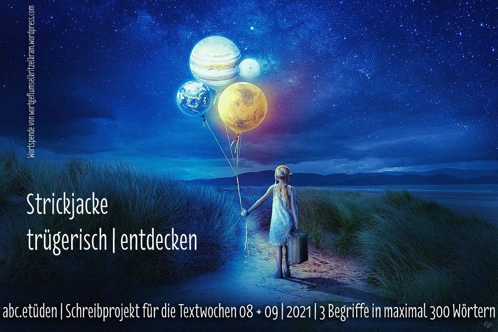 Christiane hat zu den abc-Etüden eingeladen, wie immer gilt es 3 Begriffe in einen Text mit maximal 300 Wörtern zu verpacken. Die Worte stammen diesmal von Uli mit ihrem Blog Café Weltenall und lauten: