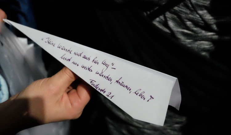 Heute Abend habe ich den obigen Findesatz spontan bei der beeindruckenden Veranstaltung „Aeham Ahmad – Der Pianist aus den Trümmern“ im Franz Aachen versteckt. http://www.aeham-ahmad.com Beim Rausgehen war der Zettel nicht mehr dort.