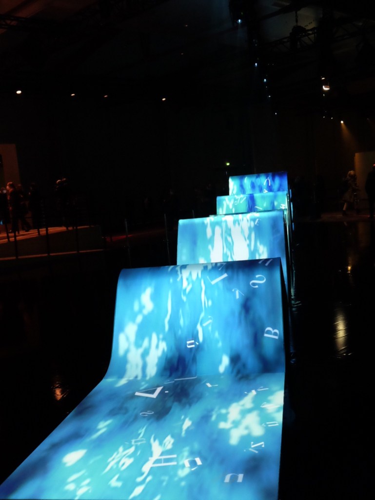 Nach der Einführung ging langsam das Licht an und der Raum wurde sichtbar. Sanfte Musik ertönte, leise Stimmen in verschiedenen Sprachen erklangen und wir konnten durch diesen wunderschönen Raum gehen. In diesem Moment fühlte ich wieder, dass es sich gelohnt hatte, so früh aufzustehen, um nach Frankfurt zu fahren. Denn nun dort zu stehen und den Raum wirken zu lassen und die Botschaften zu lesen, war berührend schön. Beim Umhergehen dachte ich, ich möchte diesen Raum gar nicht mehr verlassen. Hier treffen Poesie und Architektur in besonderer Weise zusammen. Ich teile einige Eindrücke gerne mit euch: