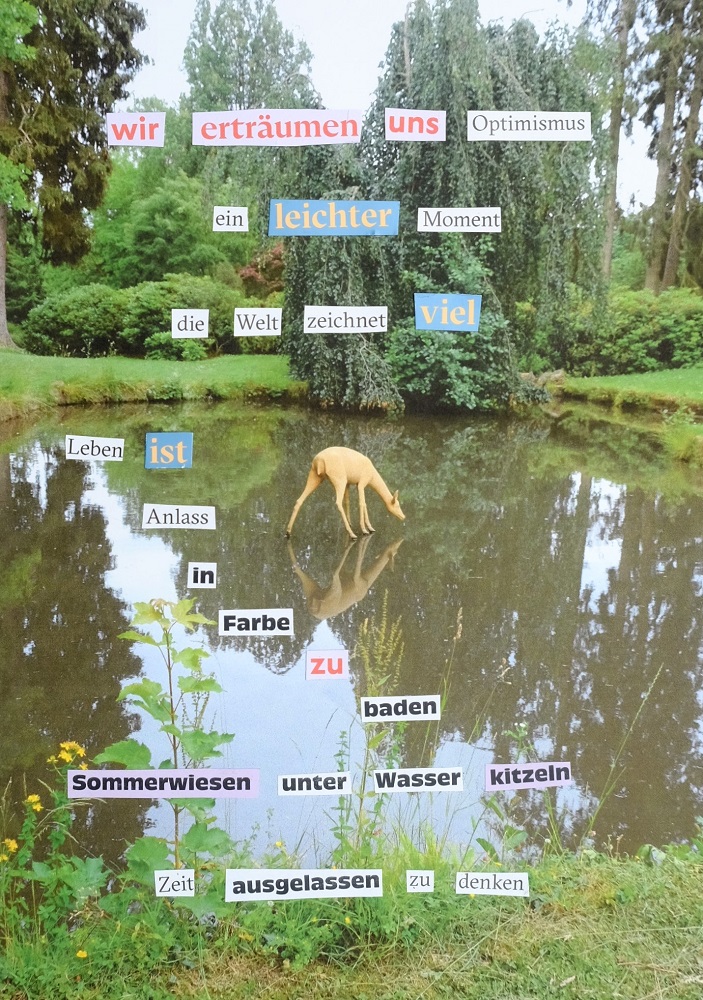 Dieses Jahr findet ihr hier zwei Kategorien. Kategorie 1: Findesatz und Wortspiel. Wöchentlich teile ich einen Satz, der mich durch seine Poesie, Tiefe oder Skurrilität inspiriert hat. Daraus entsteht ein Gedicht oder eine Kurzgeschichte, ergänzt durch ein passendes Foto. Kategorie 2: Verstecktes Wort der Woche. Ich wähle jede Woche ein Wort, das mit dem nächsten Buchstaben des Alphabets beginnt, schreibe es auf und verstecke es an öffentlichen Orten. Fotos zeigen das Wort und seinen Versteckplatz. Wie jedes Jahr werde ich über die Leipziger Buchmesse und die Frankfurter Buchmesse berichten.
